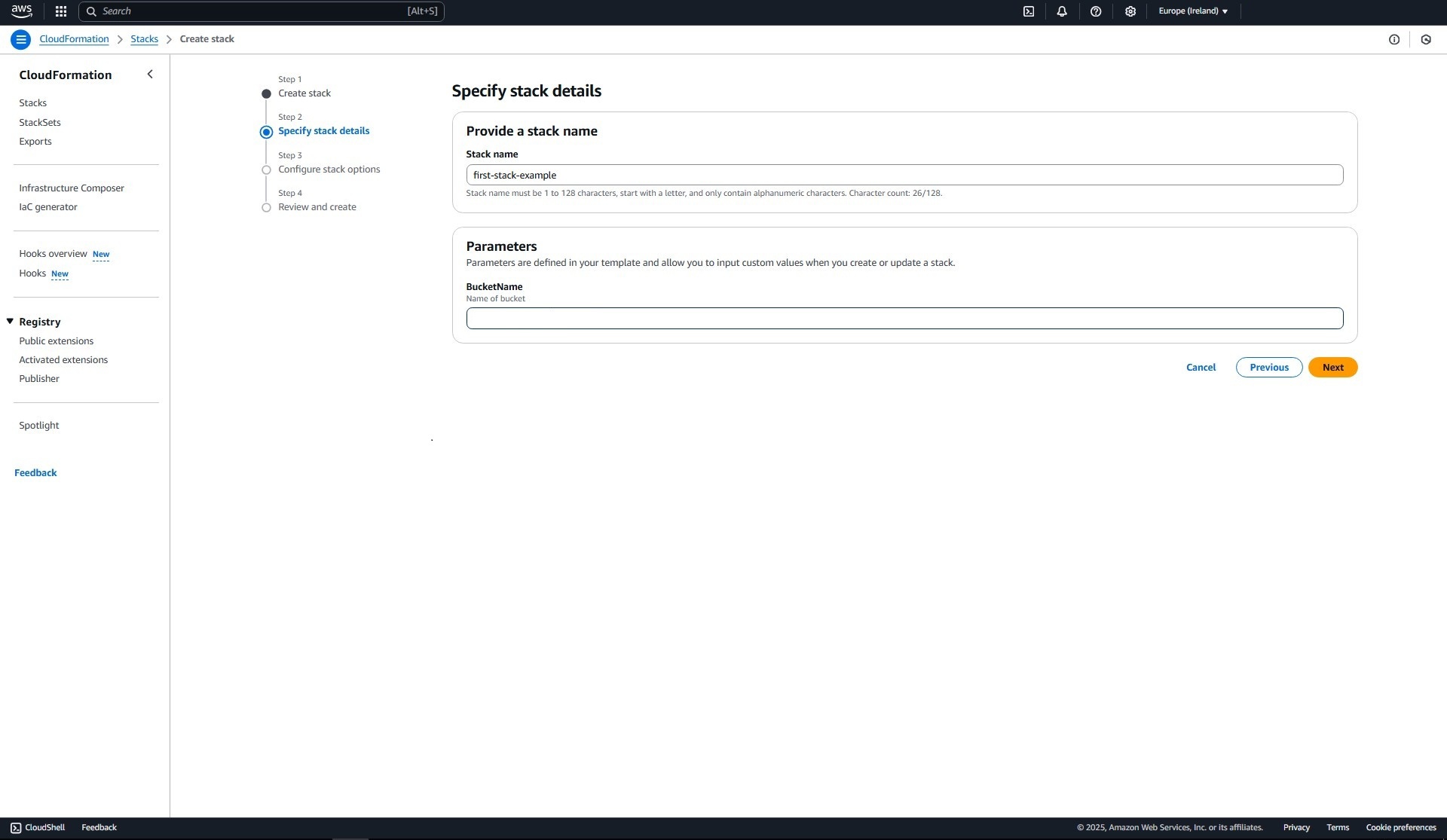 In dit eenvoudige voorbeeld wordt een S3 bucket aangemaakt. Ik zal dit voorbeeld verderop gebruiken om daadwerkelijk een bucket aan te maken.
