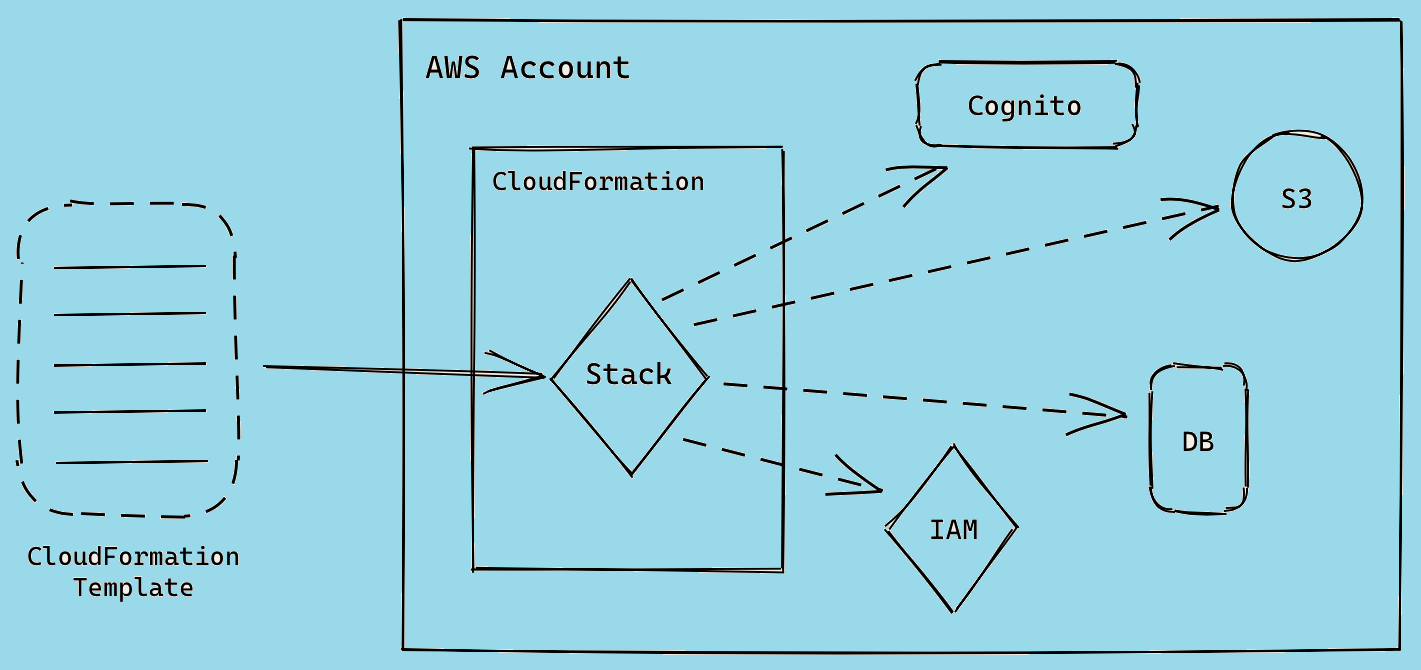 Resources Dit zijn de componenten die in een sjabloon worden gedefinieerd, zoals Cognito, IAM rollen, S3-buckets, en RDS-databases etc..