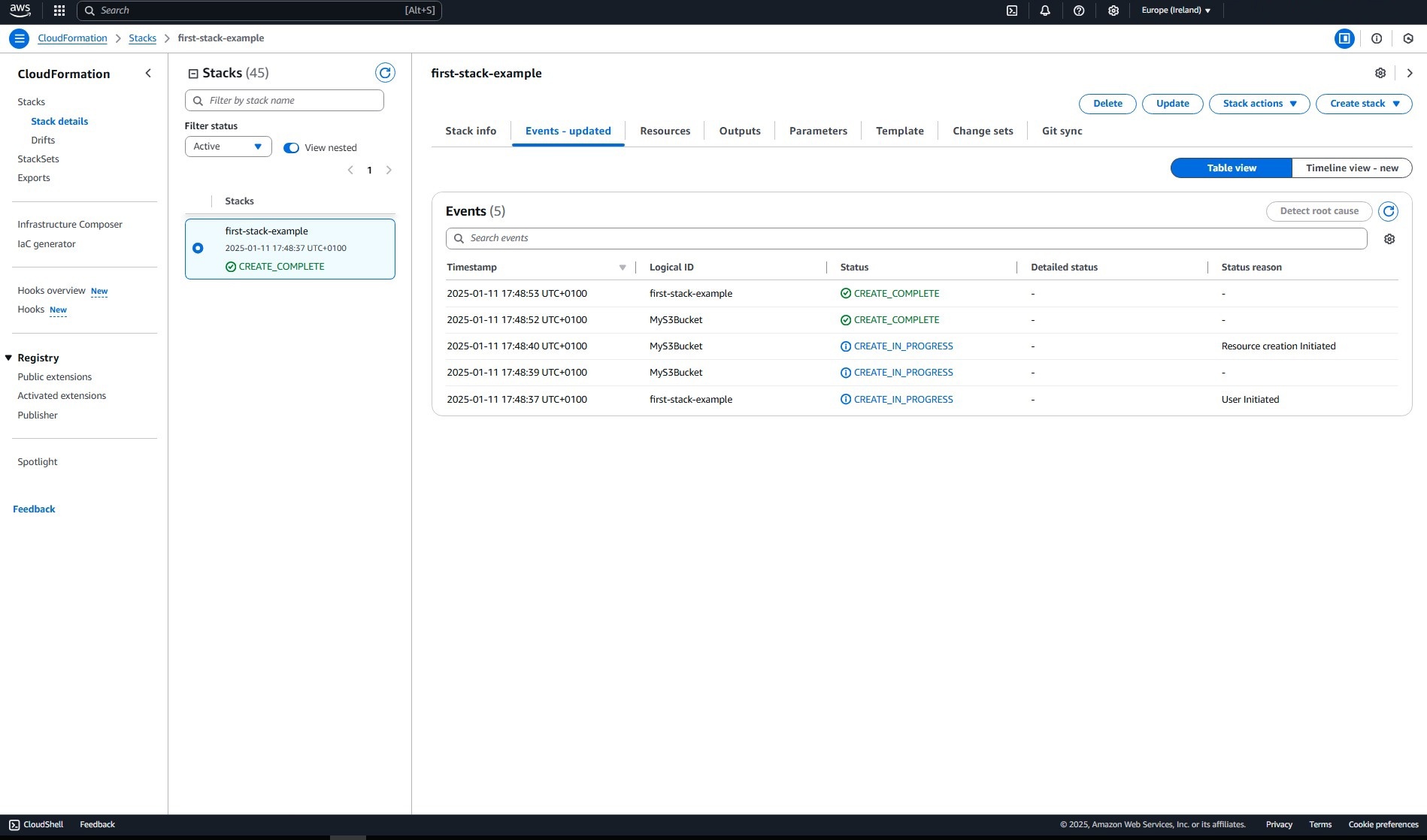 CREATE_IN_PROGRESS: De stack wordt momenteel aangemaakt.
